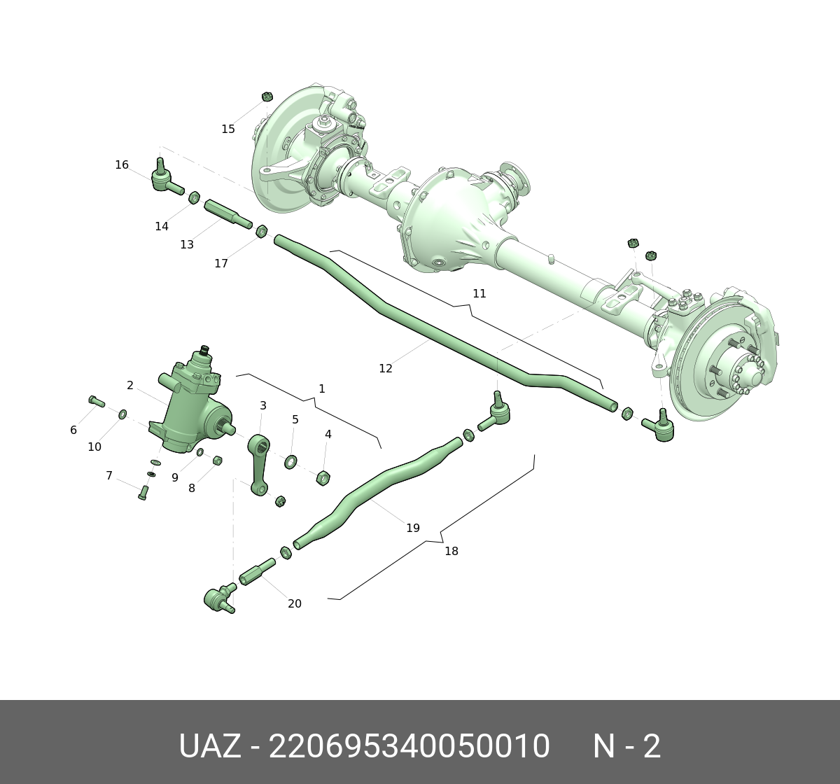 Механизм рулевой с гидроусилителем без сошки, ЗМЗ 409, УАЗ 2206, 3741, 3909, 220695340050010, УАЗ