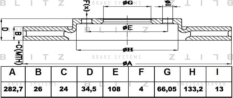 BS0167 BLITZ Диск тормозной