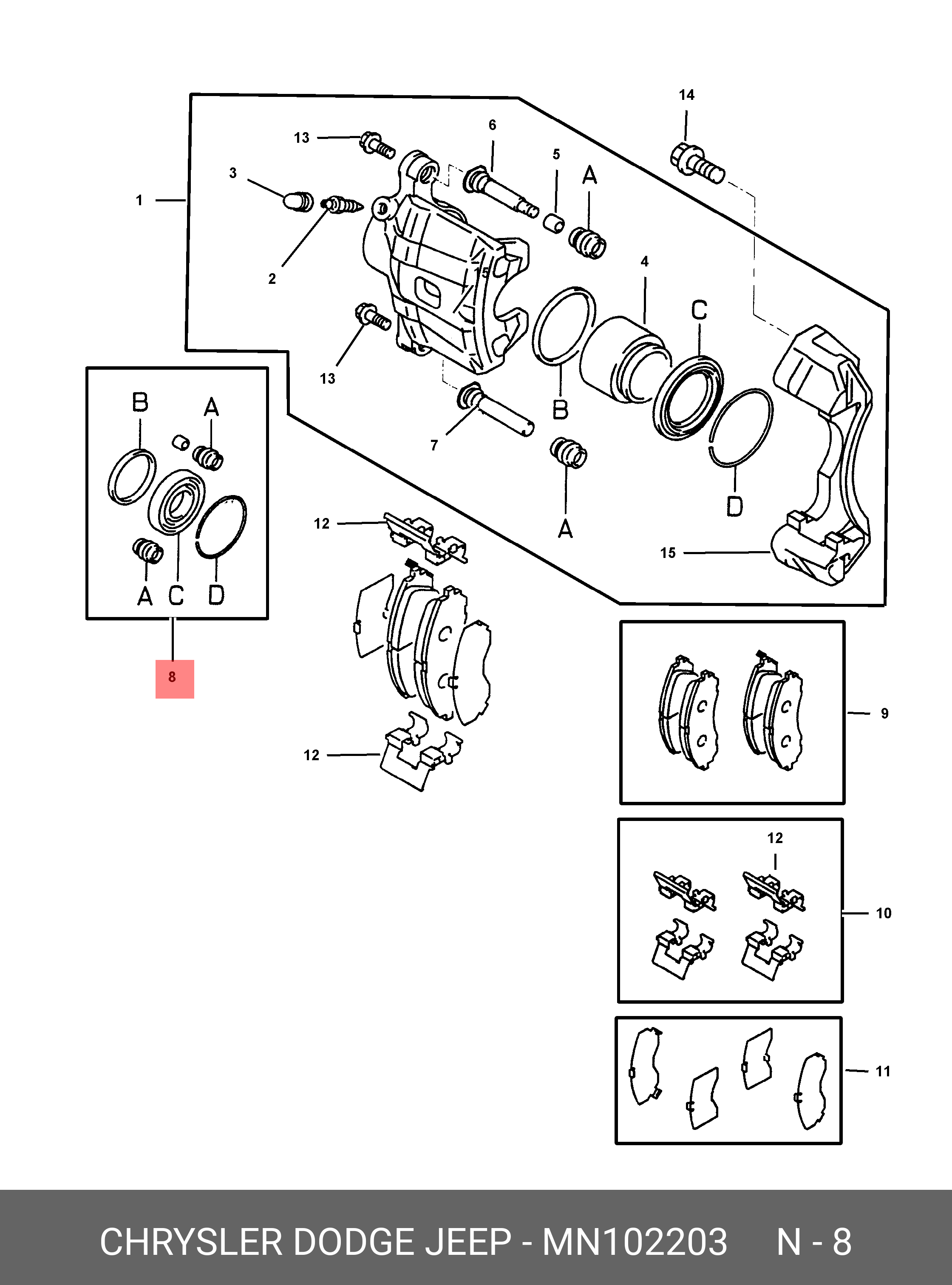 MN10 2203 CHRYSLER Суппорт тормозной (ремкомплект)