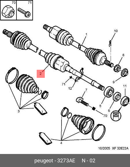 3273 AE CITROEN Вал привода колеса в сборе с ШРУСами