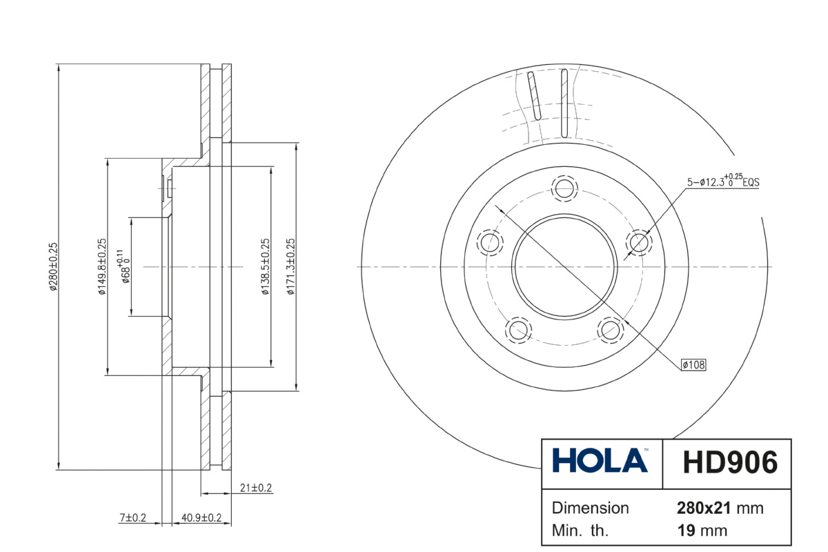 HD906 HOLA Диск тормозной