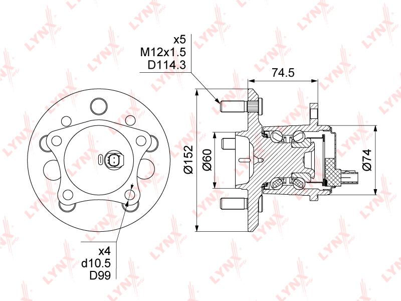 WH-1493 LYNXAUTO Подшипник ступицы колеса со ступицей (комплект)