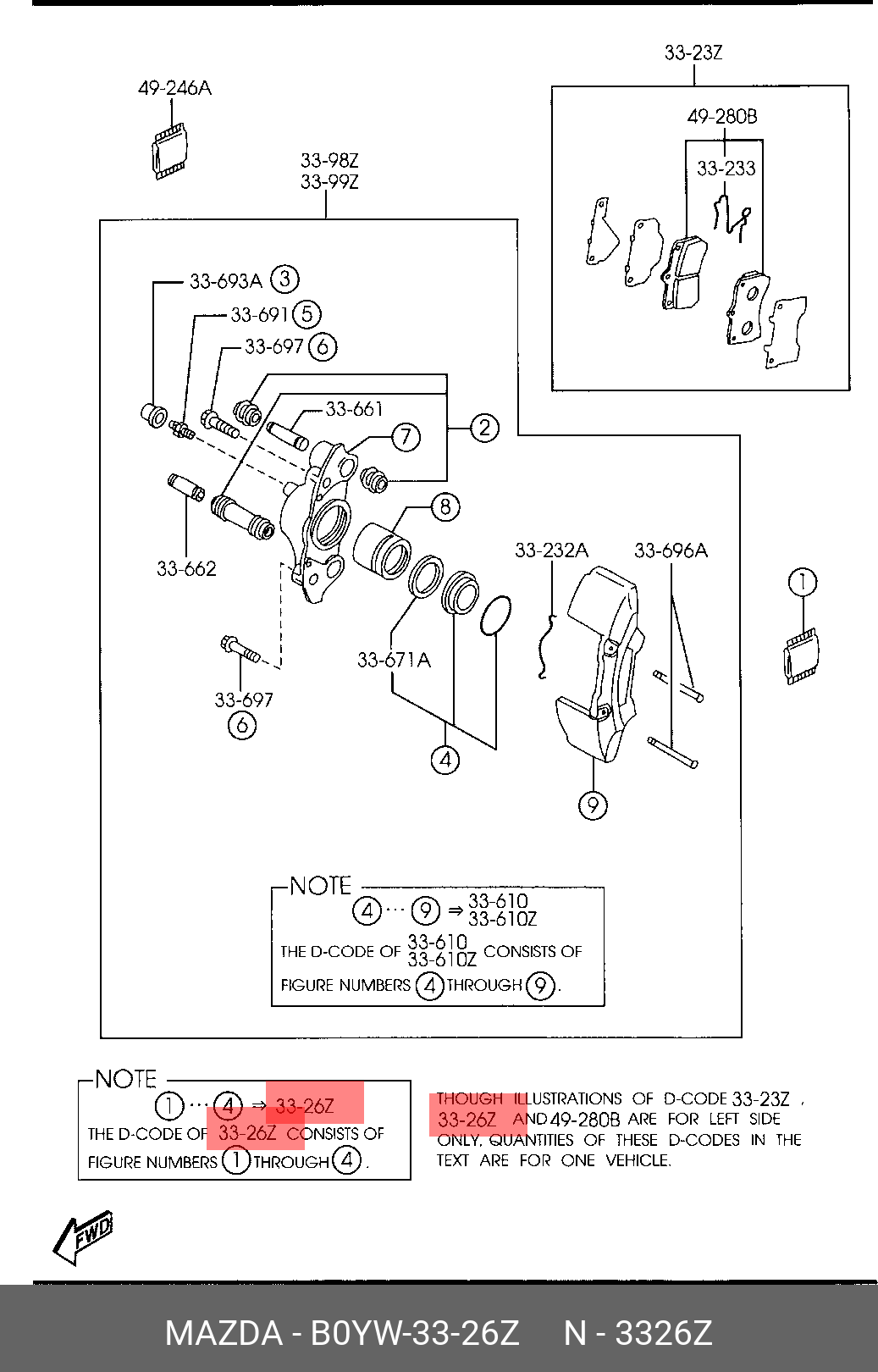 B0YW-33-26Z MAZDA Суппорт тормозной (ремкомплект)